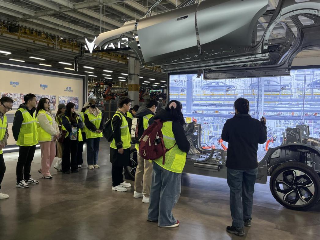 随后,师生团队走进被誉为“国内先进的绿色环保柔性化车间”的生产现场。车间采用智能化产线布局,实现多车型共线生产,并通过工业互联网平台集成MES(制造执行系统)、能源管理及环保监测系统,大幅提升生产效率与资源利用率。在涂装工序区域,企业展示的环保涂料工艺与多色定制能力,直观呈现了个性化定制与绿色制造的有机结合。参访中,师生们近距离观摩自动化焊接机器人、AGV物流小车与数字化装配工位,并围绕“生产节拍优化的管理逻辑”“供应链协同的风险管控”“碳足迹管理的实施路径”等MBA核心课程相关话题,与企业技术骨干展开交流,现场研讨氛围热烈。