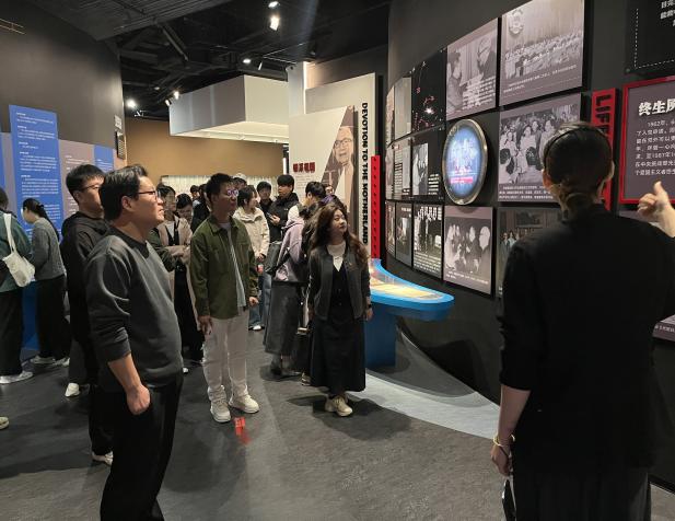 为深化产教融合、学践结合,将红色教育、科学家精神与MBA管理素养培育深度融合,4月17日下午,江苏科技大学MBA教育中心李支东、陈蓉两位老师带领2025级部分学员走进茅以升纪念馆,开展沉浸式移动课堂实践教学。